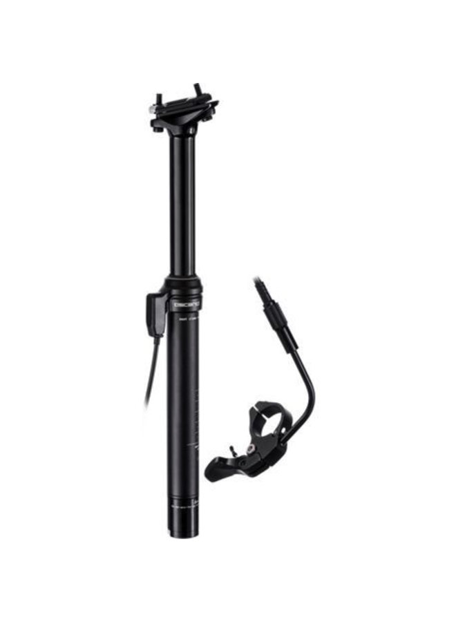 This mountain bike dropper seatpost features an ergonomic remote lever that has been designed to run from where your front shifter normally sits.